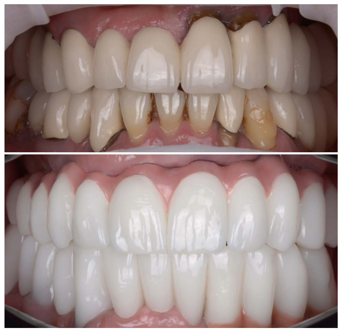 extracții dentare acolo unde nu mai exista altă soluțietratamente parodontale la nivelul dinților care au putut fi salvațiadiții de os în zonele cu pierderi majoreinserarea implanturilor dentaremai multe rânduri de lucrări provizorii, adaptate în funcție de evoluția tratamentuluirestaurări finale din zirconiu: insurubate pe implanturi și cimentate pe dinții naturali